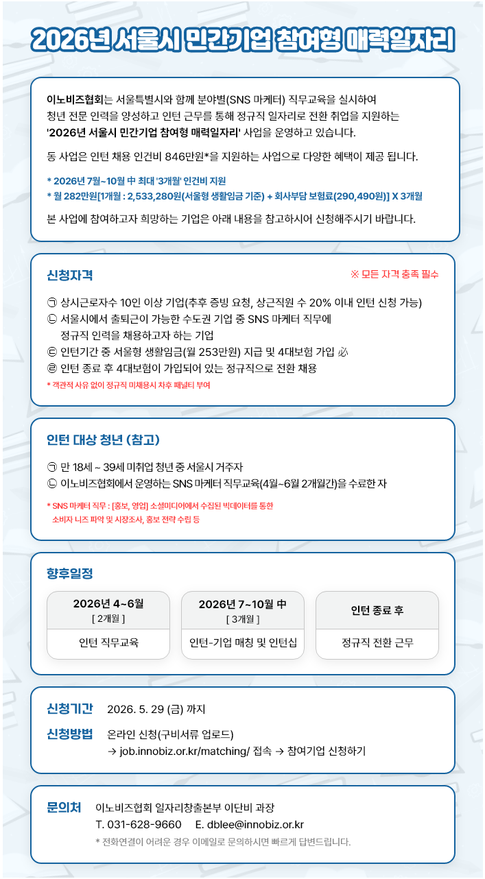 [서울] 2026년 매력일자리 사업 데이터분석 기반 SNS 마케터 양성 및 취업 과정 참여기업 모집 공고
