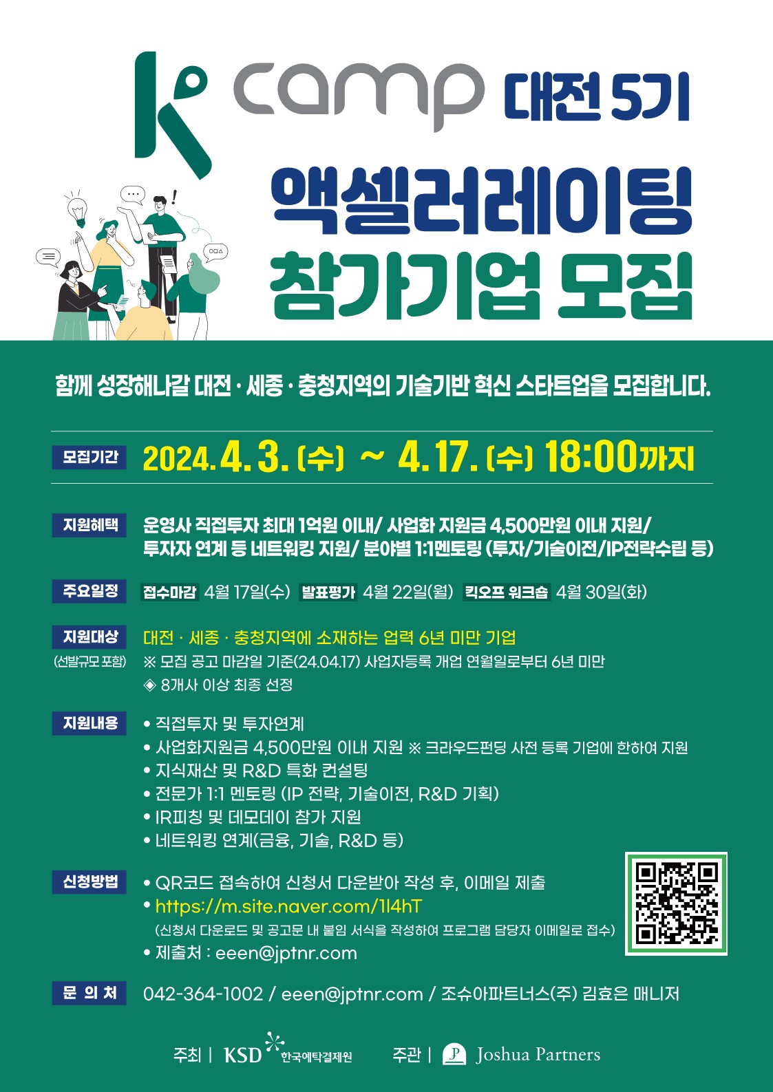 K-Camp 대전 5기 액셀러레이팅 프로그램 참가기업 모집