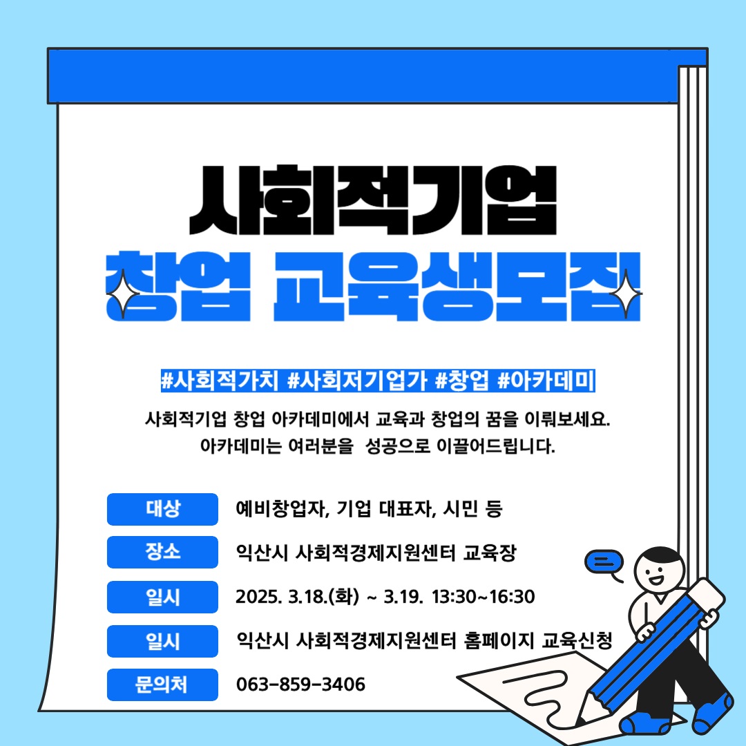 • 익산시 사회적경제지원센터 교육장(중앙로 22-202)