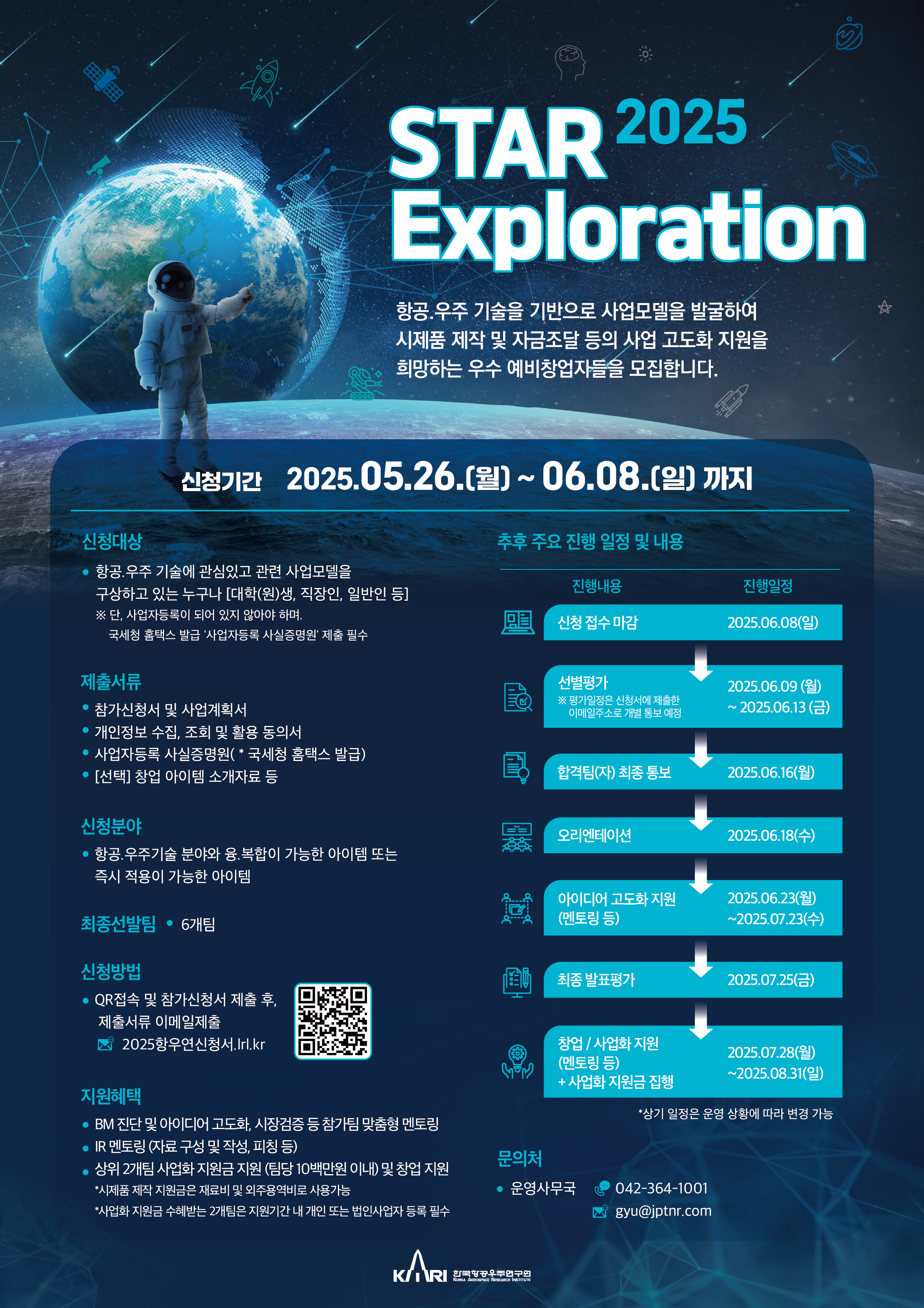 항공우주기술 기반 예비창업자 지원 사업 「2025 STAR-Exploration」(재공고)
