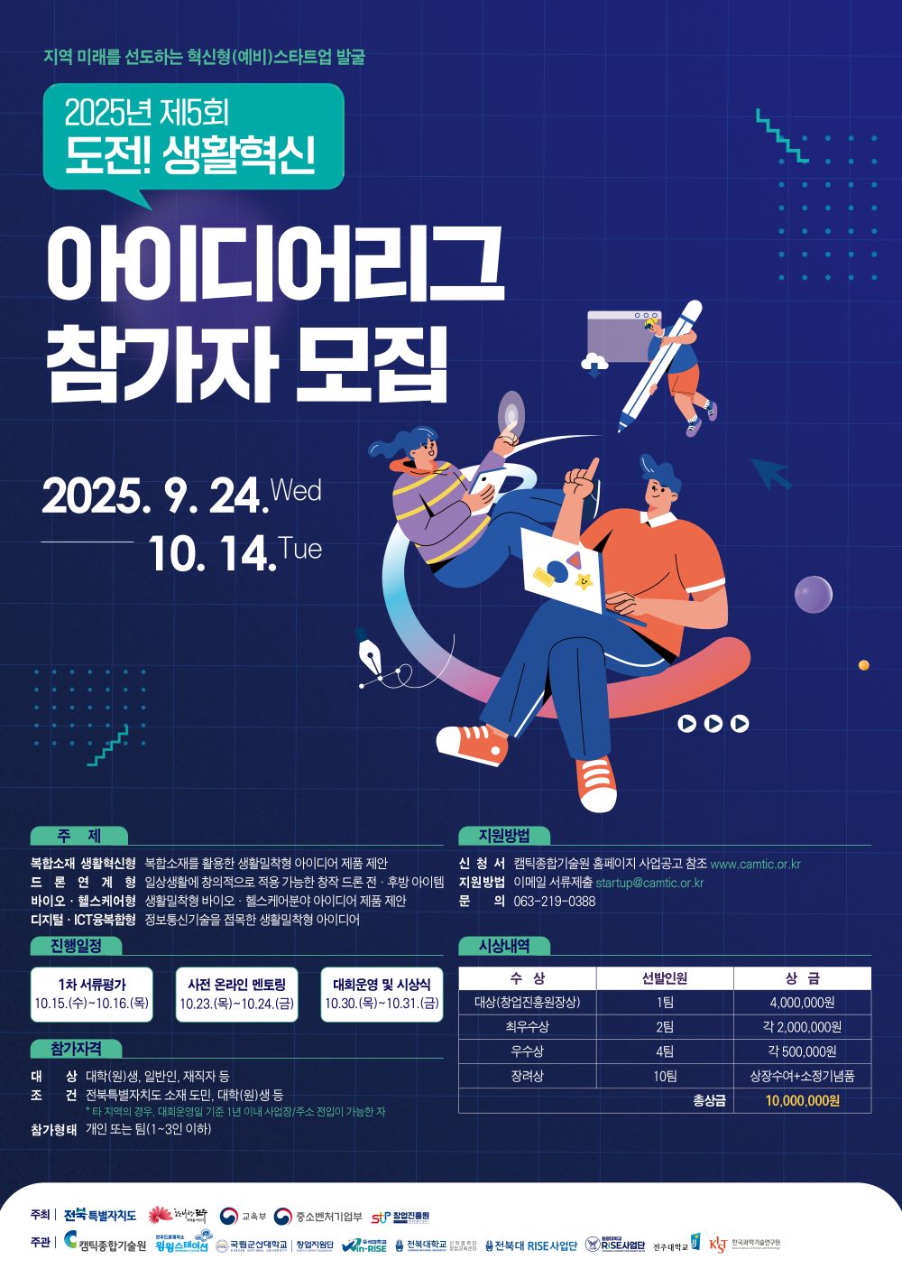 [전북] 2025년 도전 생활혁신 아이디어 리그 참가자 모집 공고(지역 미래를 선도하는 혁신형 (예비)스타트업 발굴)