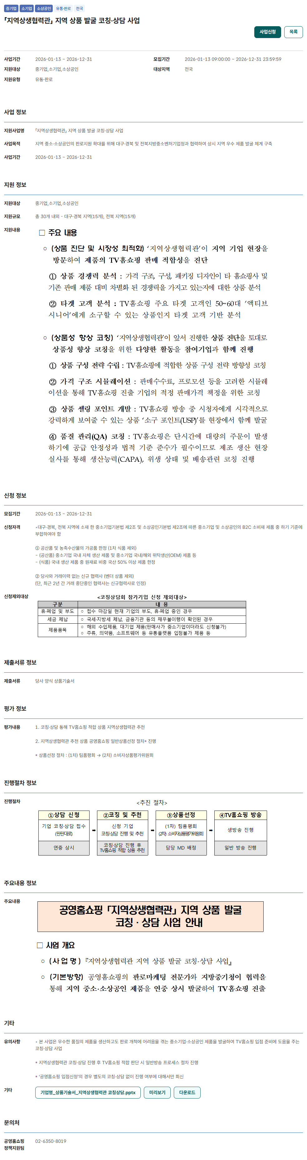 [대구ㆍ경북ㆍ전북] 2026년 지역상생협력관 지역 상품 발굴 코칭ㆍ상담 사업 공고