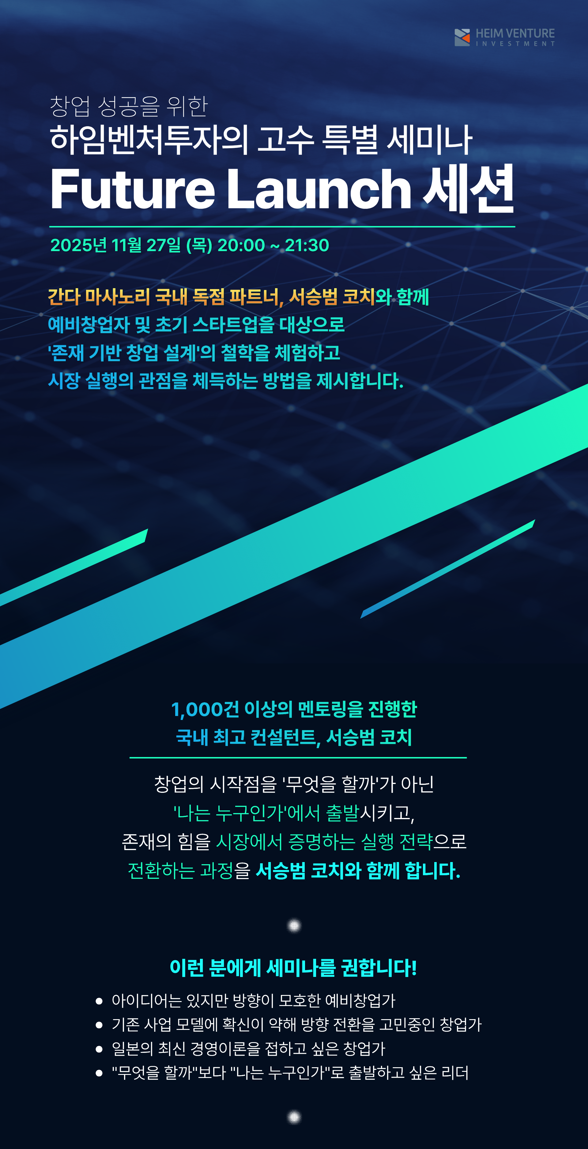 국내 단독 간다 마사노리 파트너, 서승범 코치 초청 세션 - 하임벤처투자