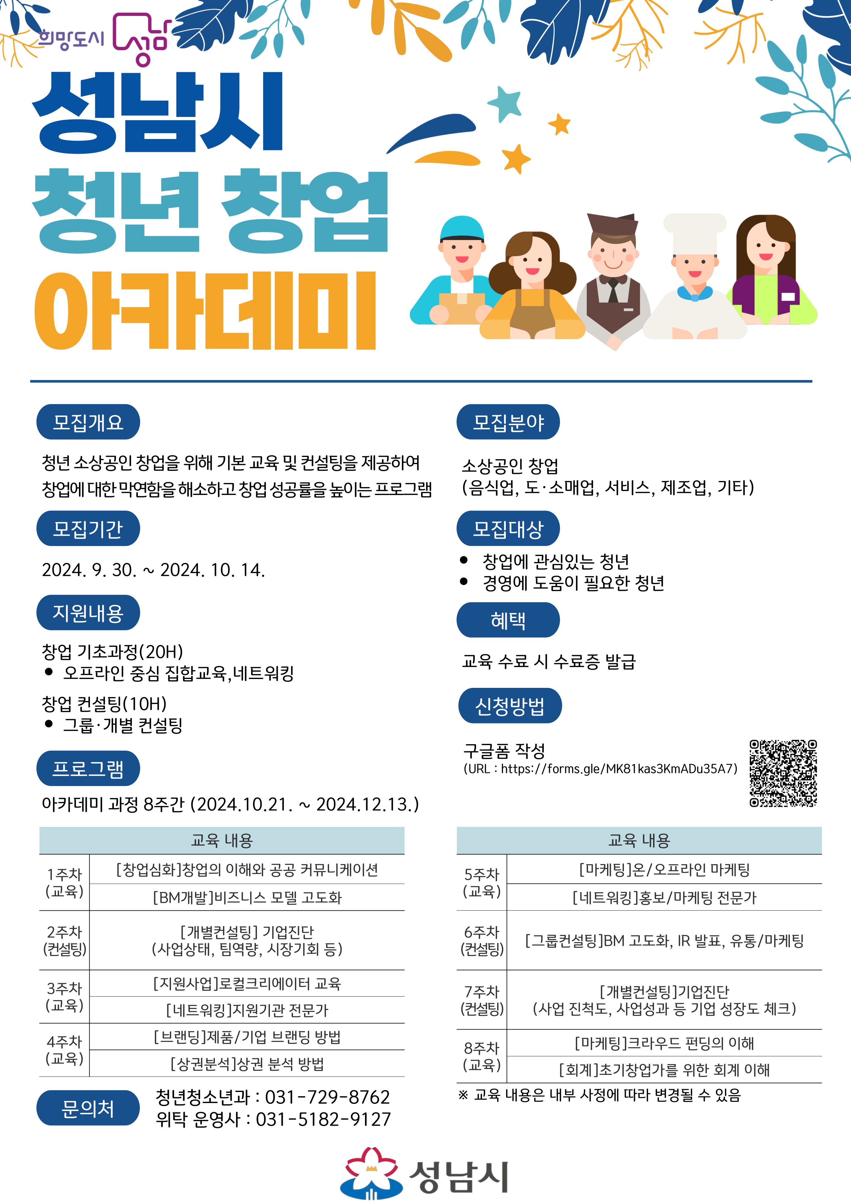 2024년 청년창업 아카데미 참여자 모집 공고(성남시)