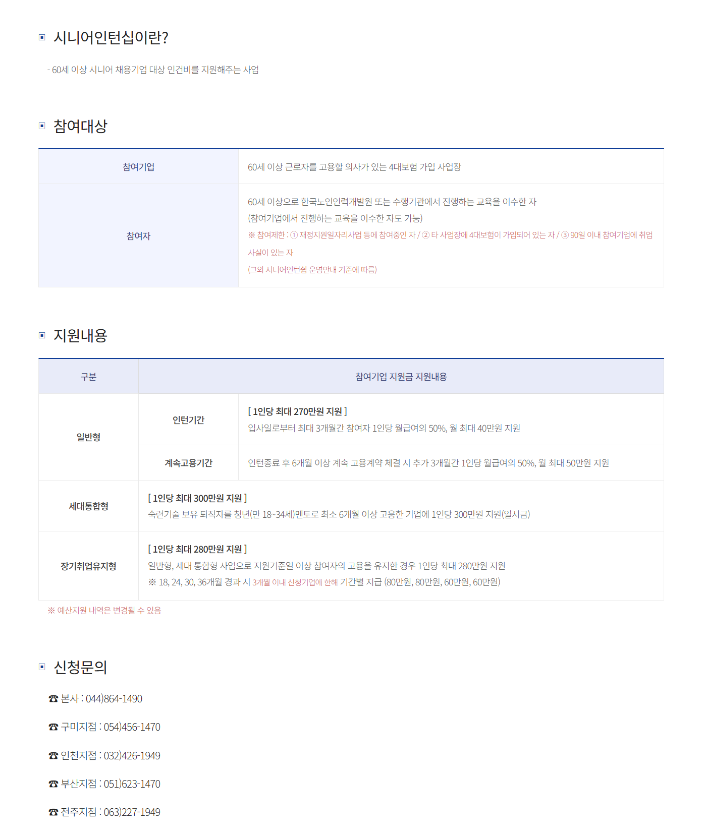 - 일반형, 세대통합형, 장기취업유지형 지원