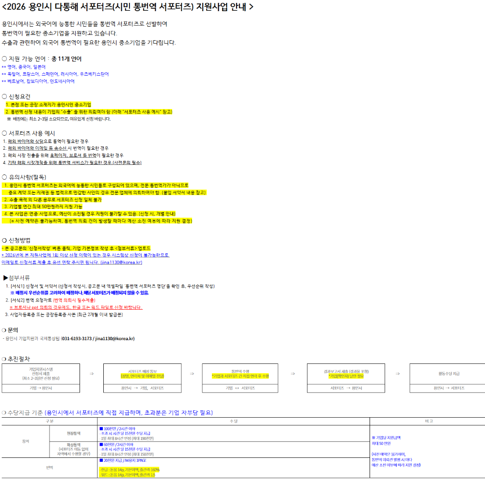 [경기] 용인시 2026년 다통해 서포터즈(시민 통번역 서포터즈) 지원사업 공고
