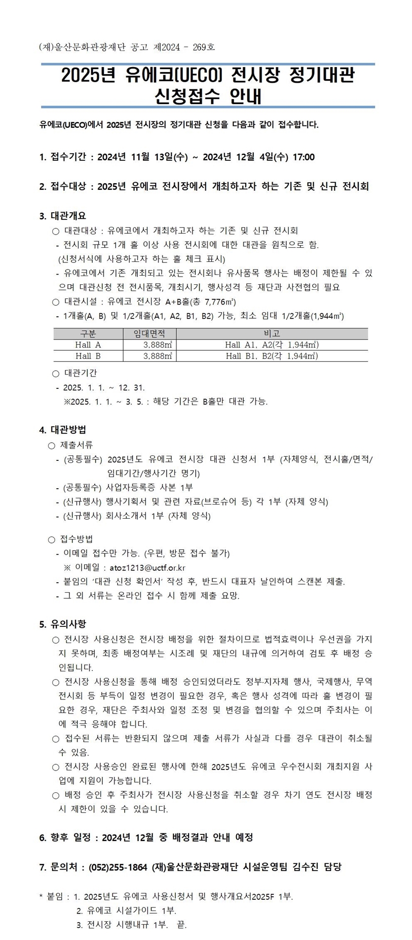 2025년 유에코[UECO] 전시장 정기대관 신청접수 안내