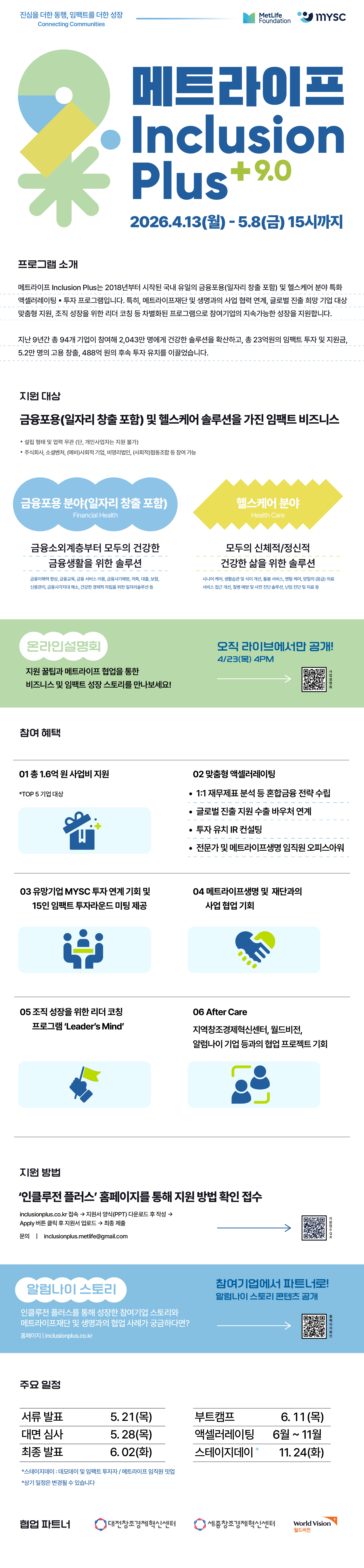 [MYSC] 메트라이프 Inclusion Plus 9.0 참여기업 모집 (~5/8)