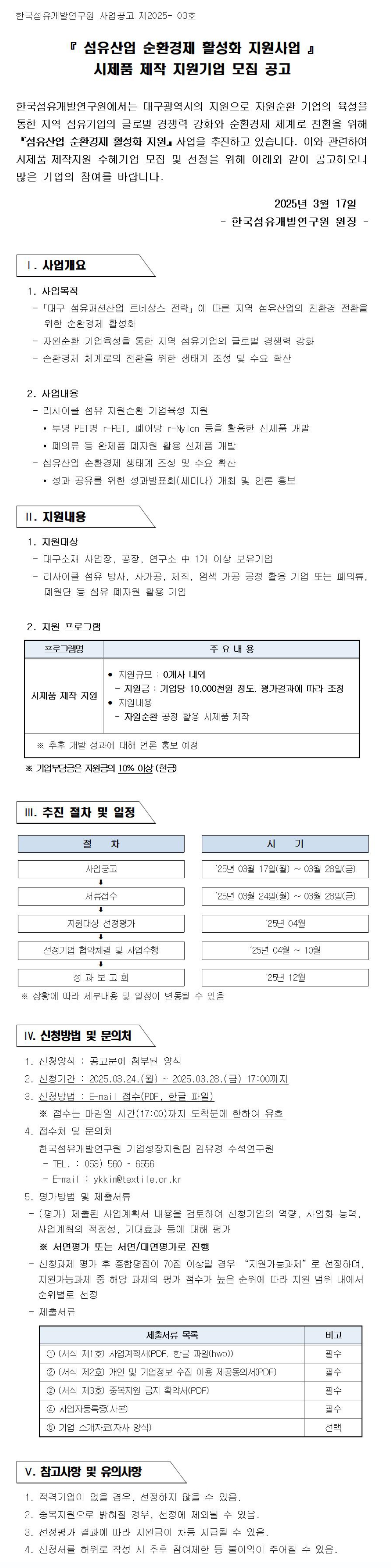 [대구] 섬유산업 순환경제 활성화 지원사업 시제품 제작 지원기업 모집 공고
