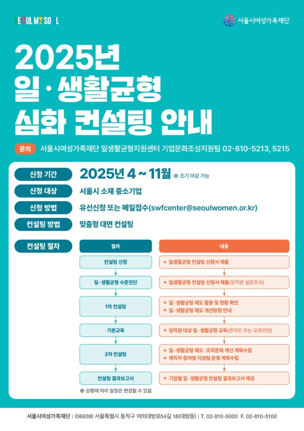 [서울] 2025년 일ㆍ생활균형 심화 컨설팅 참여기업 모집 공고