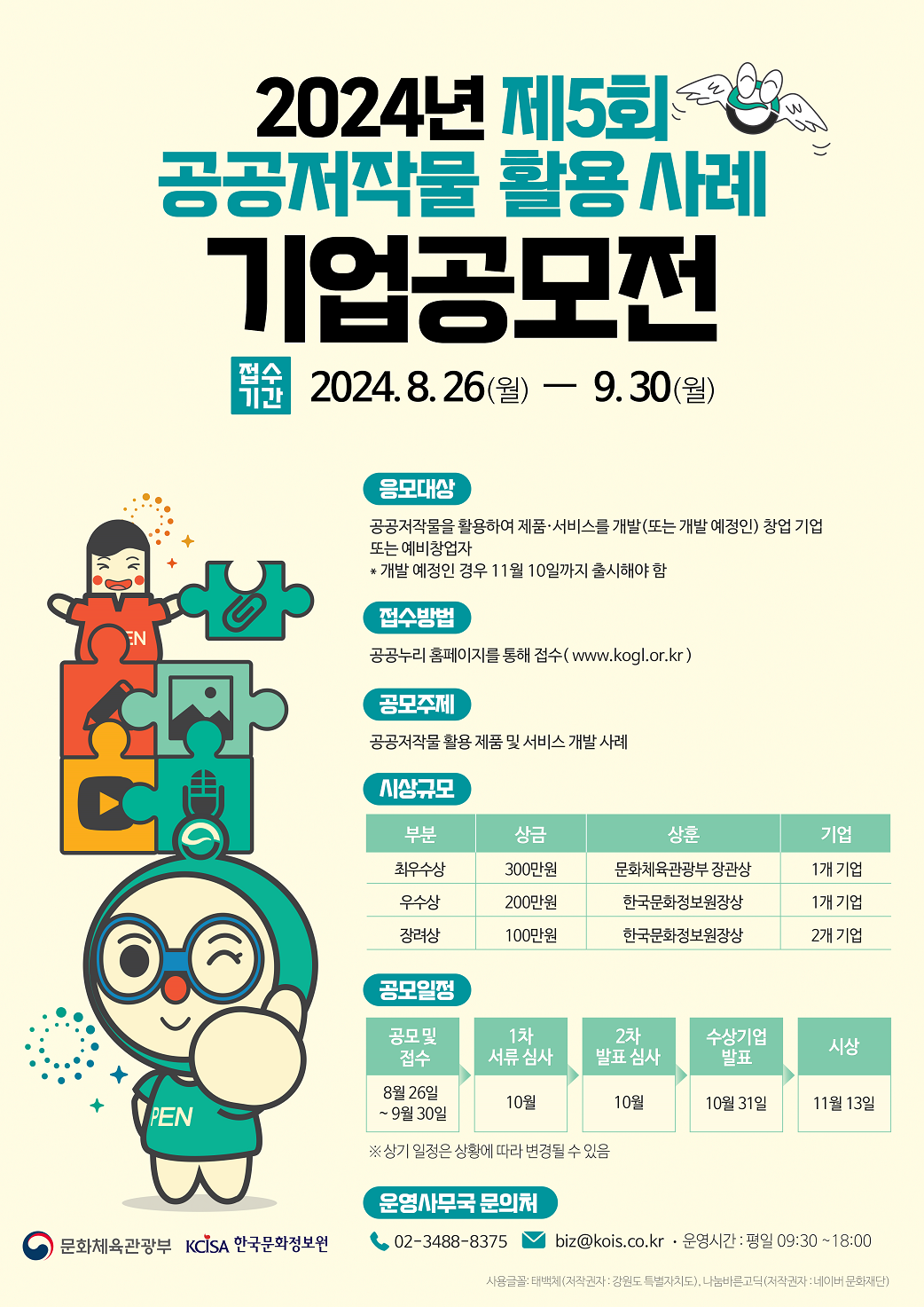 2024년 제5회 공공저작물 활용 사례 기업 공모전 참가기업 모집 공고