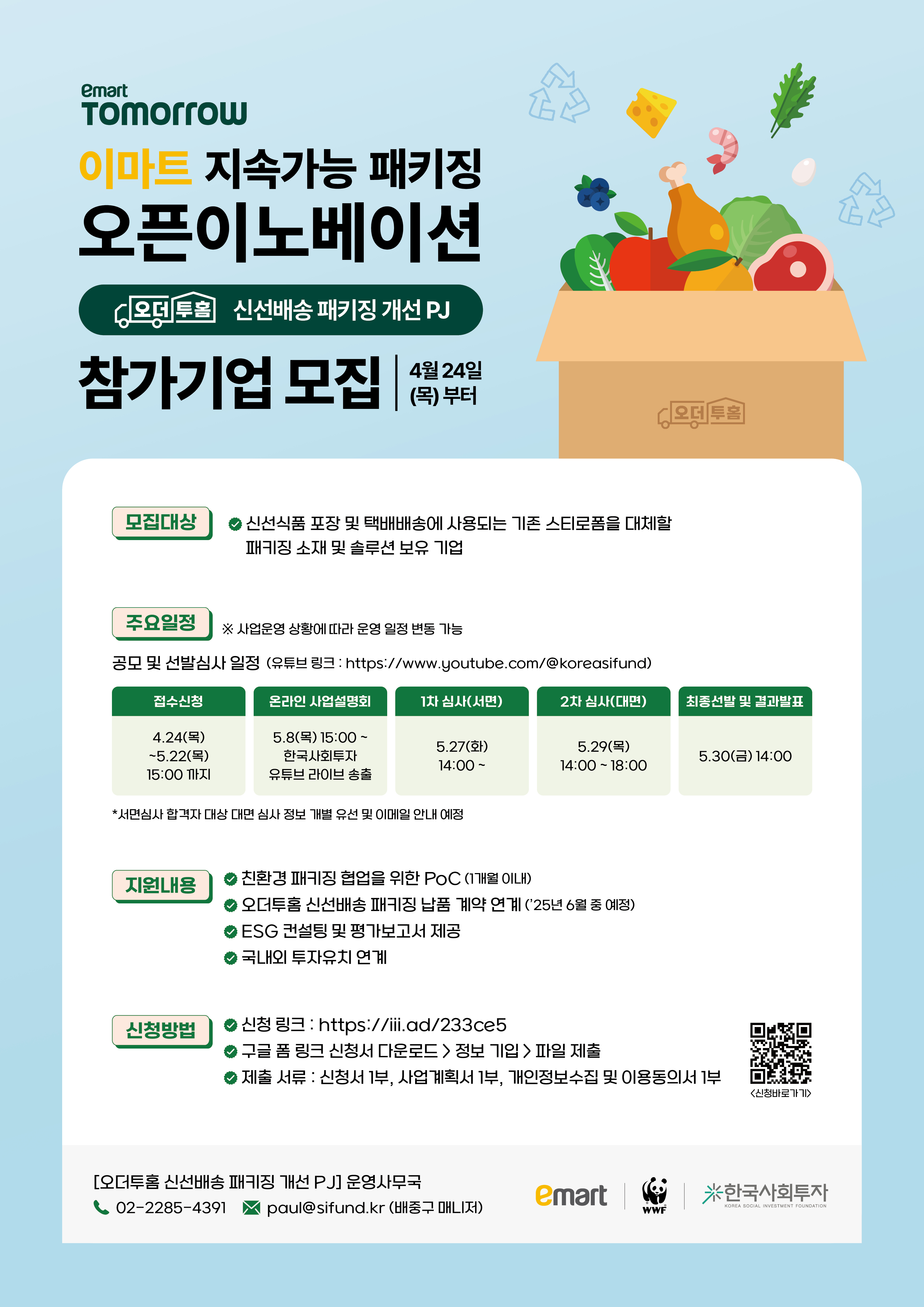 이마트 오픈이노베이션 신선식품 패키징 개선 참여기업 모집(~5/22 15:00)