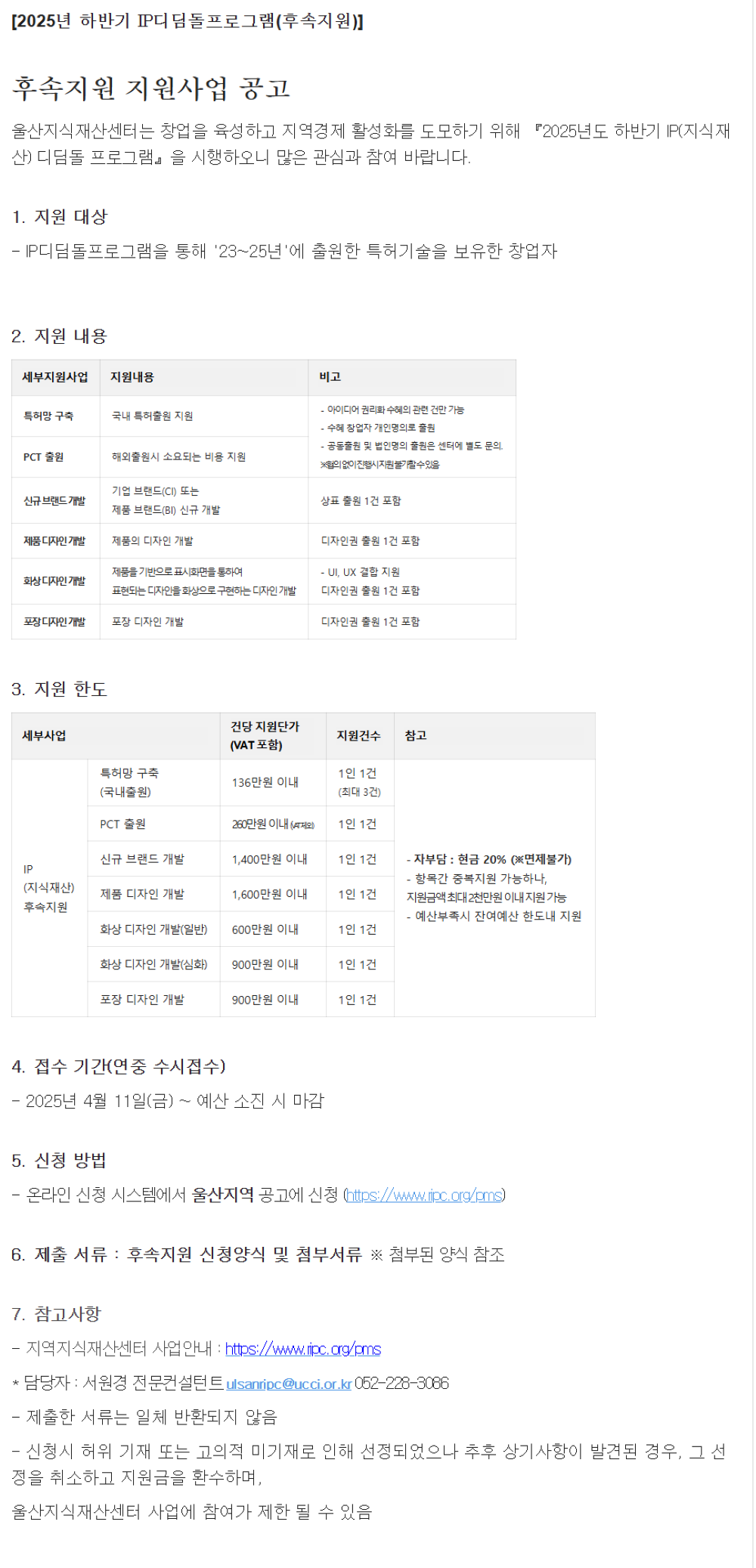 [울산] 2025년 하반기 IP디딤돌프로그램 후속지원 지원기업 모집 공고