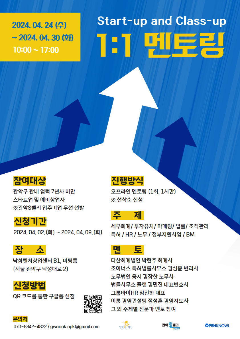 [관악S밸리 창업공간] Start-up and Class-up 1:1 멘토링 참여자 모집