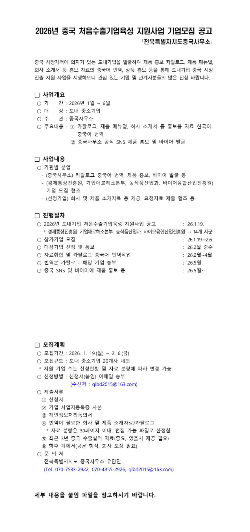 [전북] 2026년 중국 처음수출기업육성 지원사업 기업모집 공고