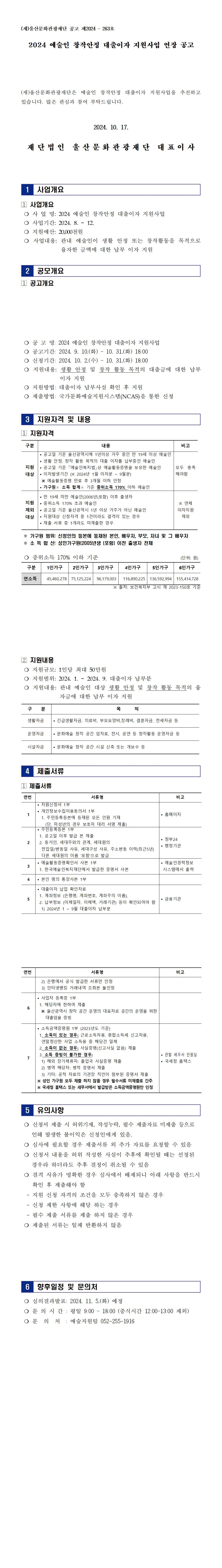 2024 예술인 창작안정 대출이자 지원사업 연장 공고