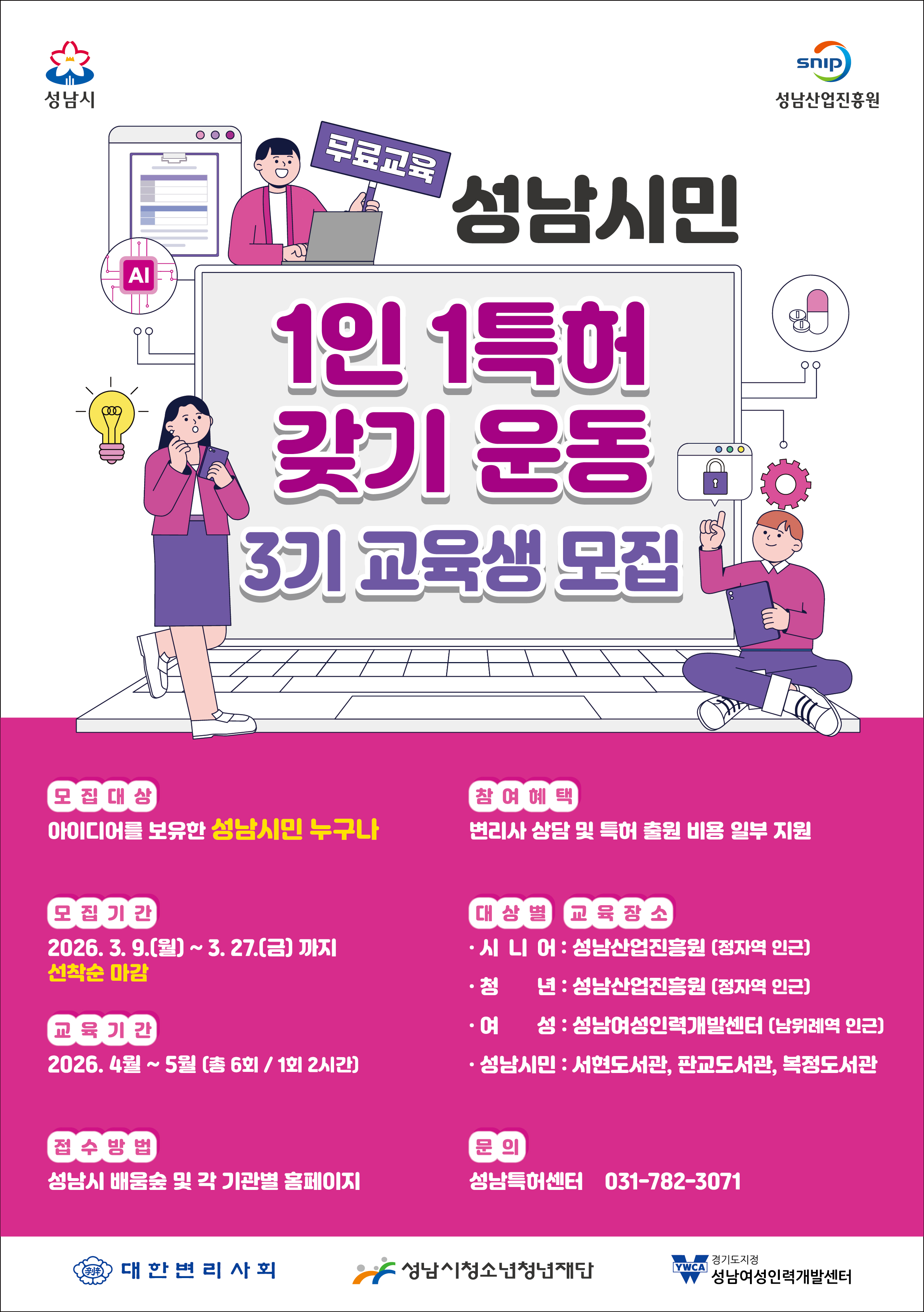 [성남특허센터] (통합공고) 성남시민 1인 1특허 갖기 운동 3기 교육생 모집