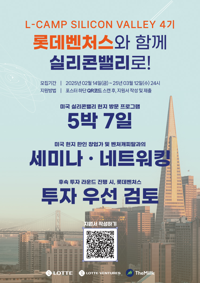 2025 롯데벤처스 L-CAMP Silicon Valley 4기 참가 스타트업 모집