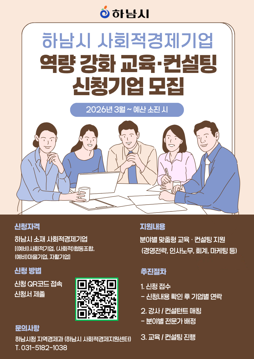 [경기] 하남시 2026년 사회적경제기업 역량 강화 교육ㆍ컨설팅 신청기업 모집 공고