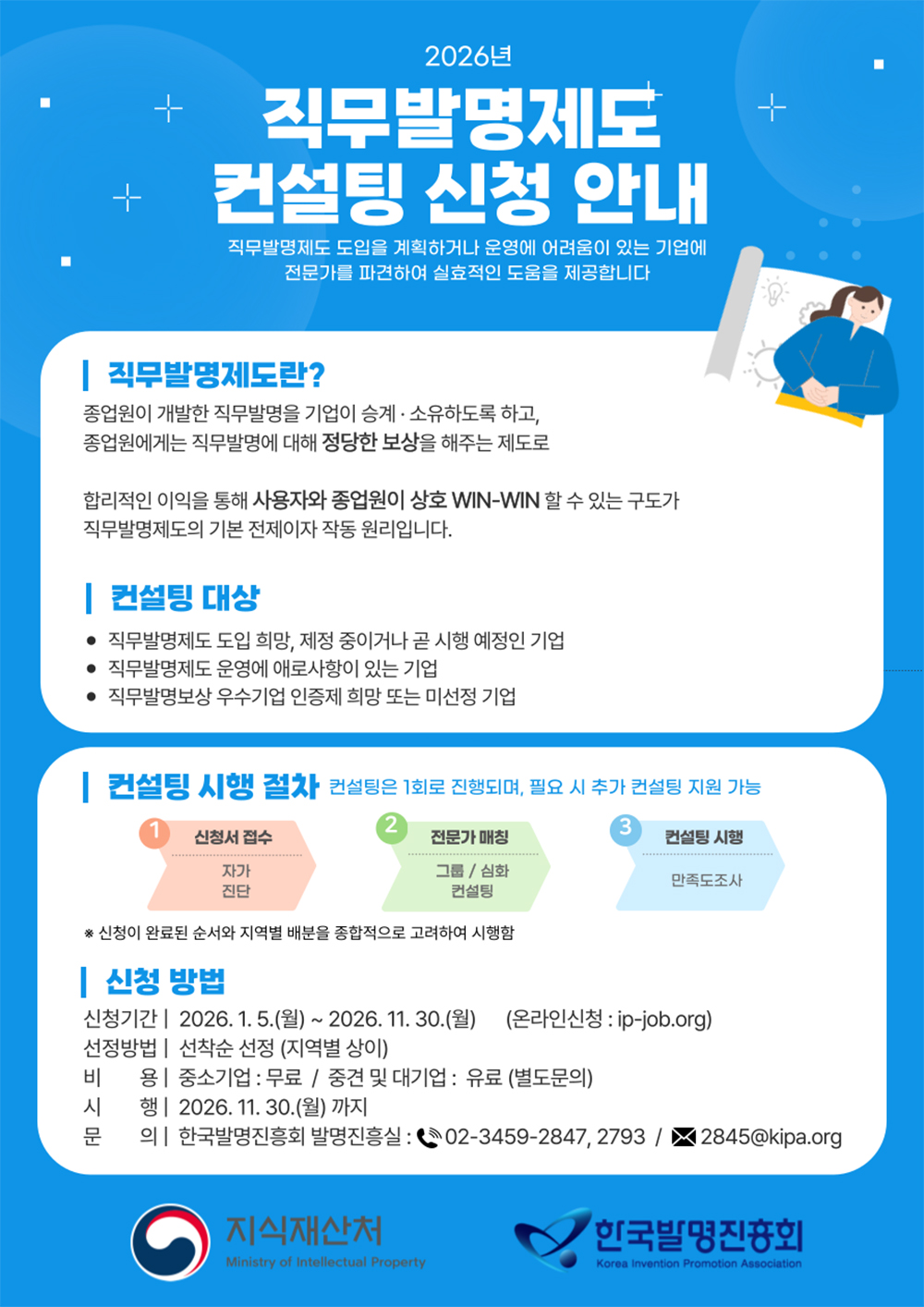 2026년 상반기 무료 직무발명제도 컨설팅 신청 공고