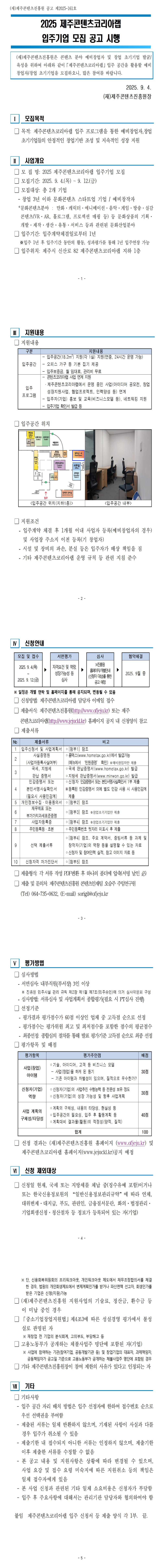 [전국] 2025년 제주콘텐츠코리아랩 입주기업 모집 공고