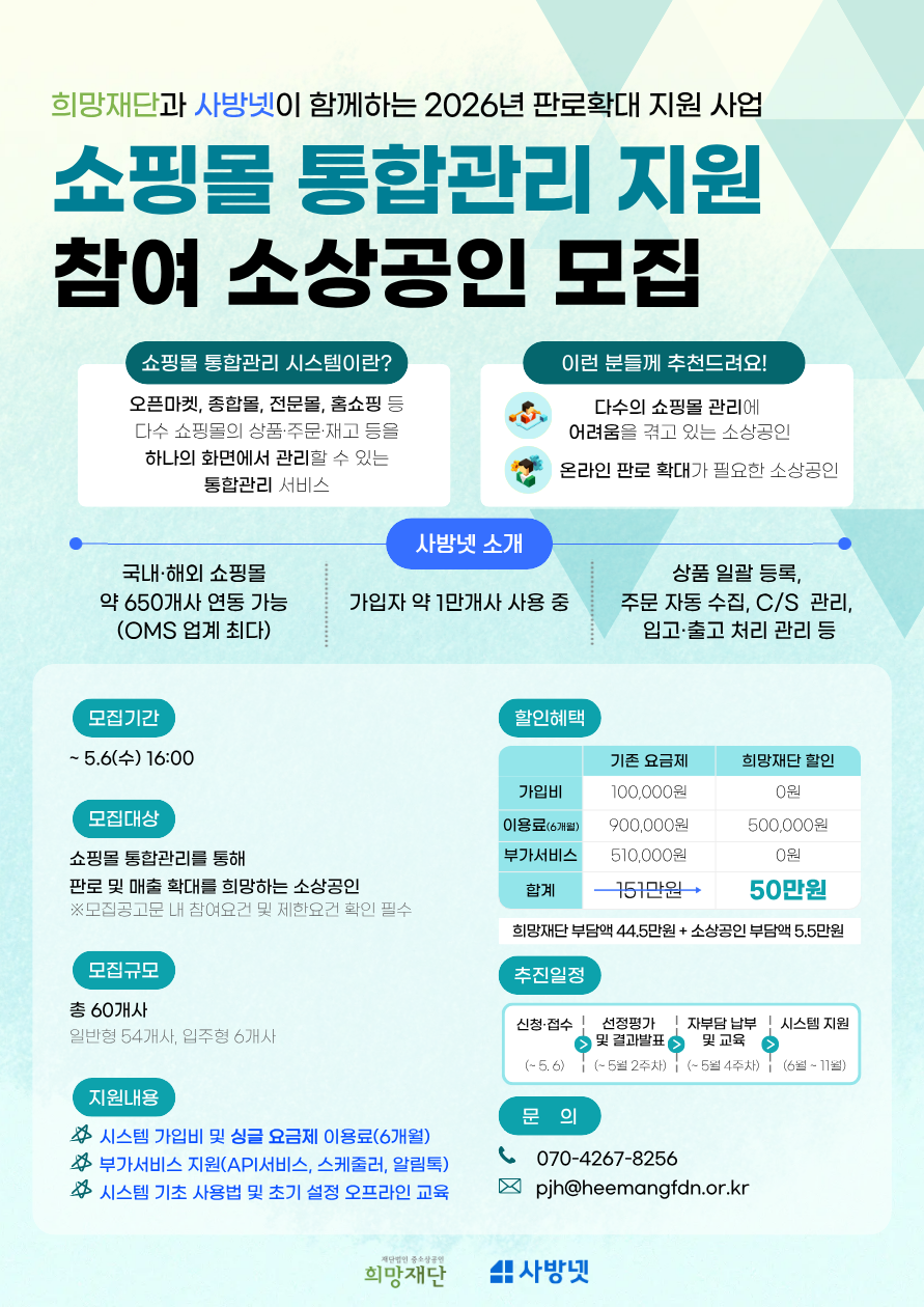 - 쇼핑몰 통합관리 시스템 이용료 지원(6개월)