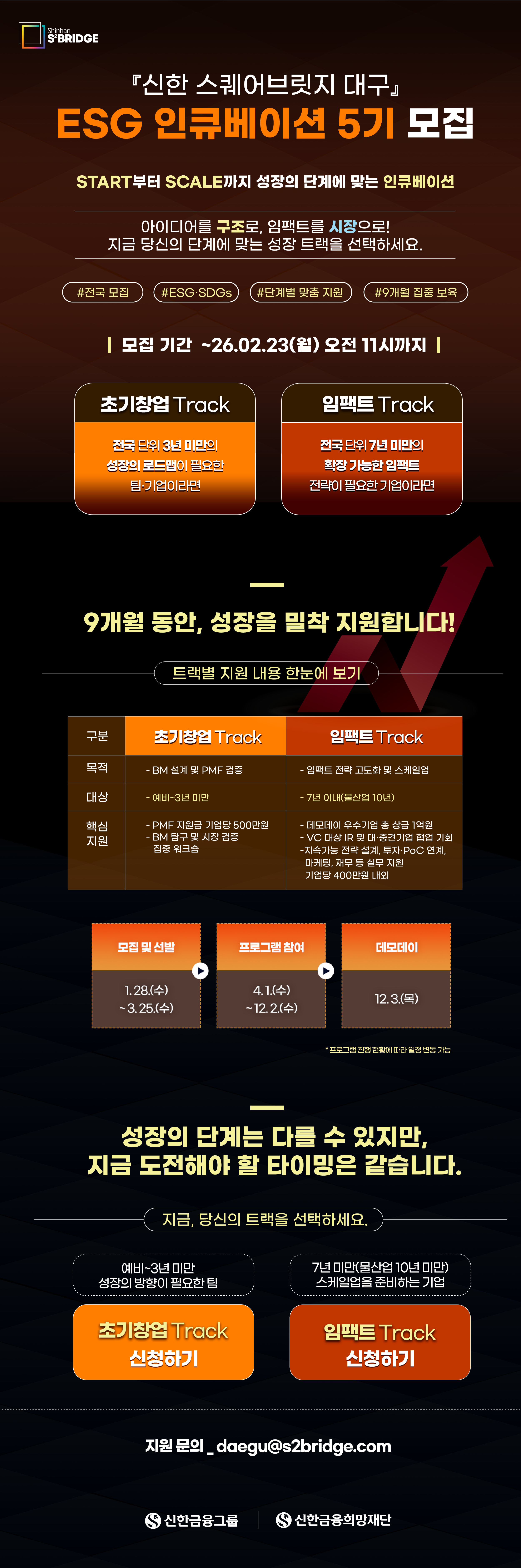 [신한스퀘어브릿지대구] ESG 인큐베이션 5기 스타트업 모집