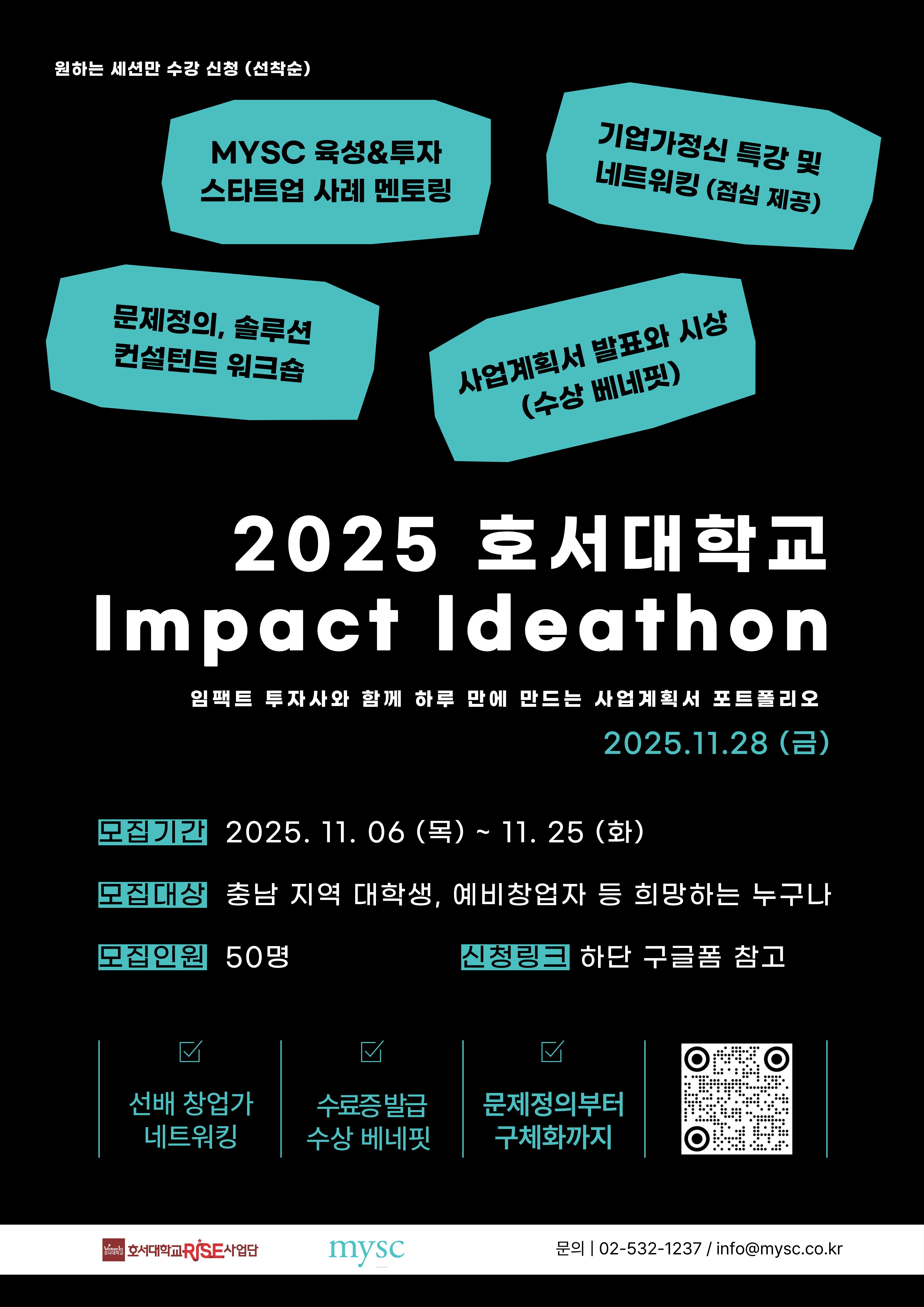 ? [모집~11.25] 2025 호서대학교 Impact Ideathon ? : 임팩트 투자사와 함께하는 실전 창업 멘토링 참가자 모집
