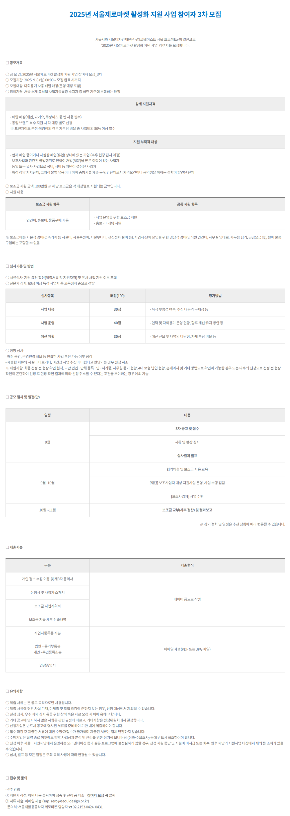 [서울] 2025년 3차 서울제로마켓 활성화 지원 사업 참여자 모집 공고