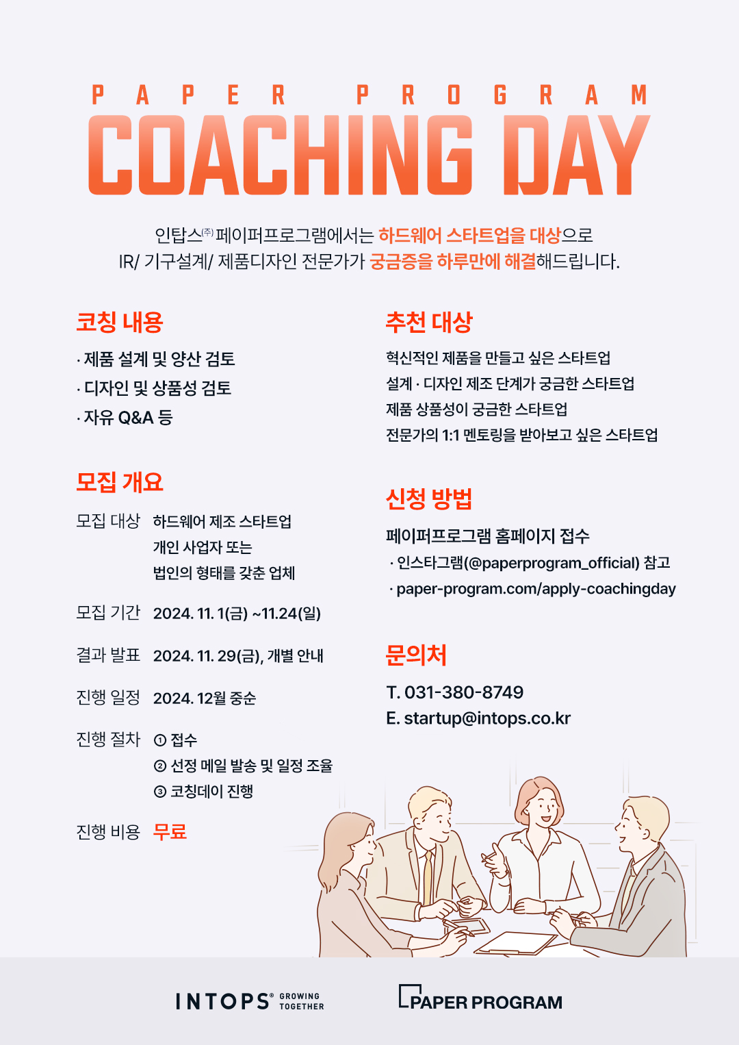 하드웨어 스타트업 제품 디자인, 설계, 제조 1:1 무료 전문가 컨설팅 5월 '코칭데이' 참가 모집